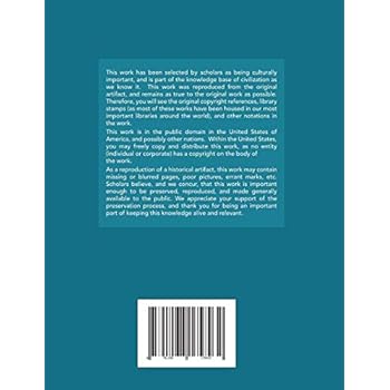 This work has been selected by scholars as being culturally important, and is part of the knowledge base of civilization as we know it. This work was reproduced from the original artifact, and remains as true to the original work as possible. Therefore, you will see the original copyright references, library stamps (as most of these works have been housed in our most important libraries around the world), and other notations in the work. This work is in the public domain in the United States of America, and possibly other nations. Within the United States, you may freely copy and distribute this work, as no entity (individual or corporate) has a copyright on the body of the work.As a reproduction of a historical artifact, this work may contain missing or blurred pages, poor pictures, errant marks, etc. Scholars believe, and we concur, that this work is important enough to be preserved, reproduced, and made generally available to the public. We appreciate your support of the preservation process, and thank you for being an important part of keeping this knowledge alive and relevant.